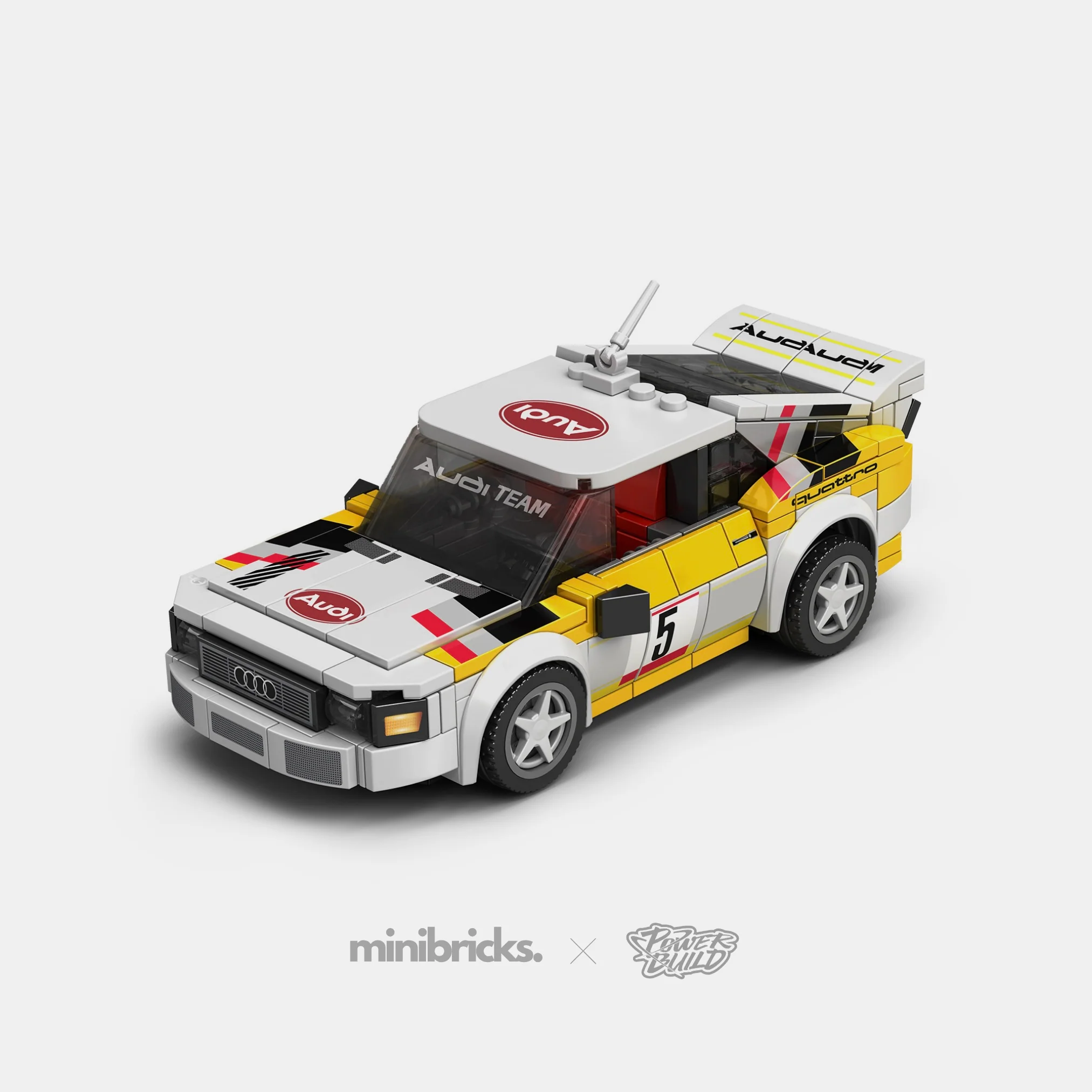 Officially licensed by Audi, this exclusive collaboration between Minibricks® and PowerBuild® delivers the ultimate rally experience in 1:24 scale. With over 1100 pieces, the Audi Team Quattro Set brings pure motorsport heritage to your collection.