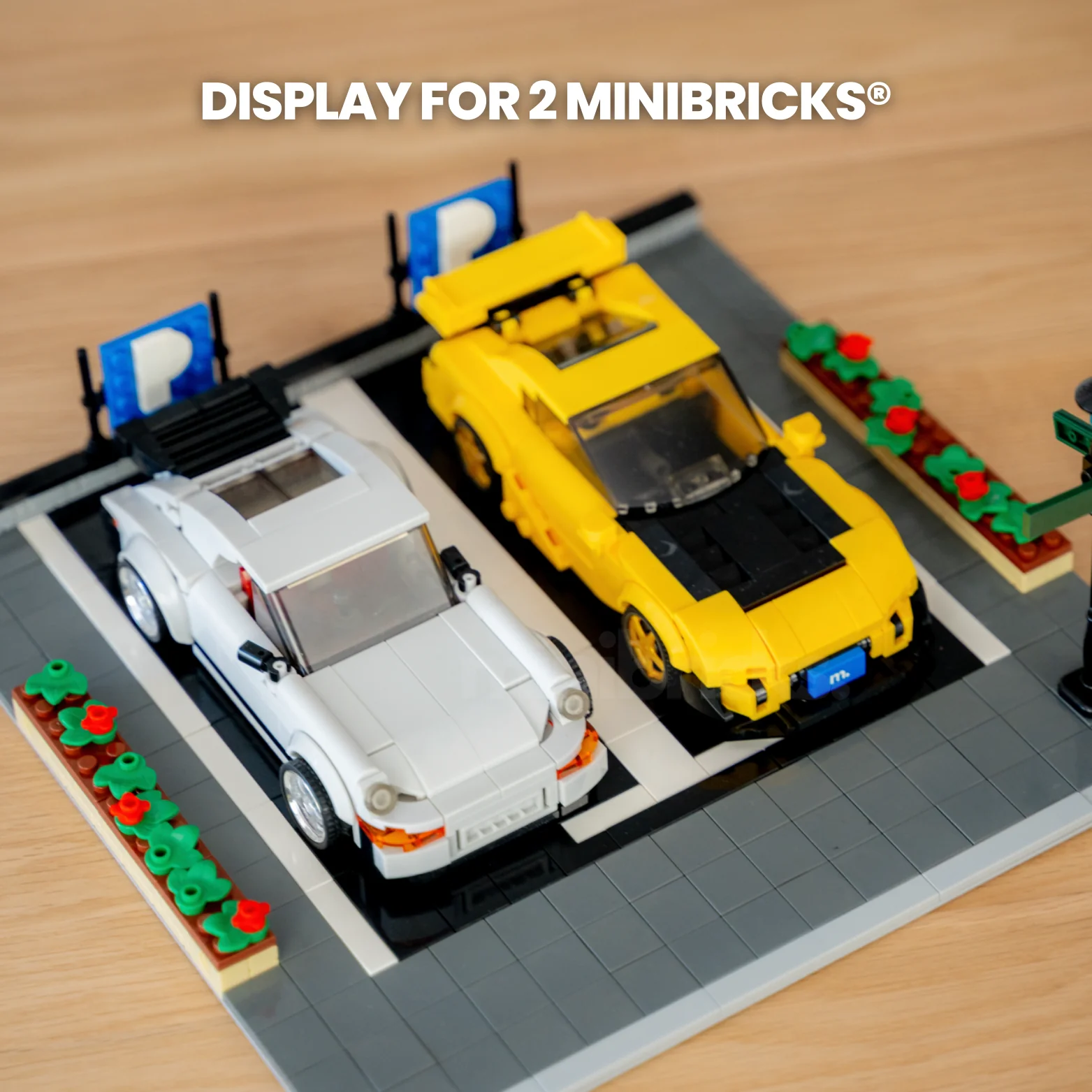 Display your builds like they deserve — the Parking Display fits 2 Minibricks® perfectly.